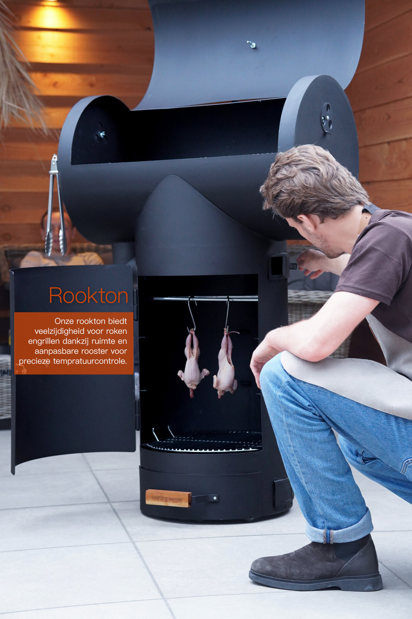Onze rookton biedt veelzijdigheid voor roken en koken dankzij ruimte en aanpasbare roosters voor precieze temperatuurcontrole. Handgemaakt voor de liefhebbers van gerookt eten, is onze rookton de perfecte keuze voor uw volgende barbecue-avontuur